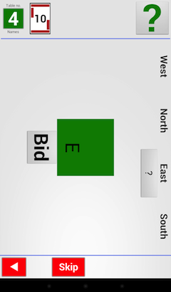 The player in turn to bid is indicated by the ? mark in the bidding summary and the “Bid” button.