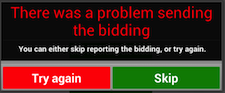 END OF AUCTION A warning message might appear if the auction is not immediately communicated to the server. You can safely disregard (Skip) this warning as the auction will be transferred automatically in the background when communication has been re-established.