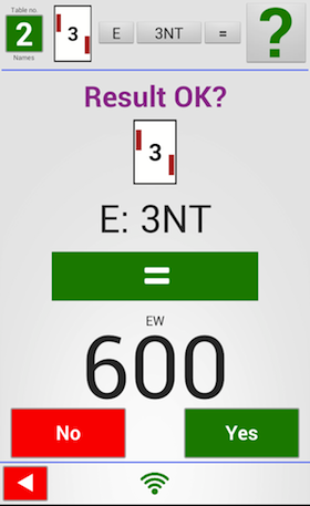 This screen is for East (or West) to agree on the result by pressing “Yes”.
