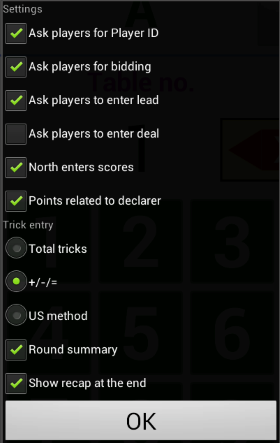DUMMY SETTINGS At real tournaments the game settings come to all tables from the control software running on a central computer. In Dummy mode you can instead set some of these settings in the dialog shown to the right. Note that you have to exit dummy mode and then reenter it if you want to change settings.