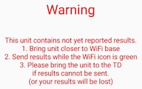 The BT will tell when the results have to be sent to the control software. When the WiFi icon is yellow some functions (e.g. comparison of your result with the other tables) will not be available. You can safely ignore the blackish message that can appear until you come to a screen telling that communication is required.