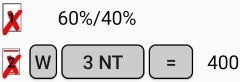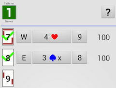 Note that result’s components are buttons (W, 3NT and = in the example shown to the right). And if you click the button with the board no. you will find more ways to amend a result. See a separate page for details on that.