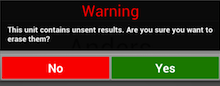 UNSENT RESULTS AT START It can also happen that a warning appears telling that the unit contains unsent Results. In this case you should call the TD before clicking Yes.