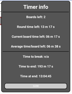 When the round time has expired any overtime will be indicated by an upwards counting timer. Overtime is shown with exclamation marks.