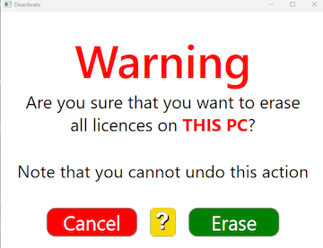 Note that your licence(s) will be void and cannot be reinstated when you have typed Alt-Ctrl-shift-U and clicked Erase in the subsequent warning message