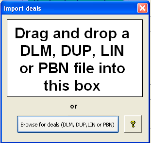 IMPORTING DEALS INTO BTC Deals can be imported into BTC via FILE/Import deals, which opens a Windows file dialog with .dlm as the default file format. i.e. you might have to change the file format. BTC will warn if you change to “All filetypes” and select a file that cannot be recognised, see illustration to the right.