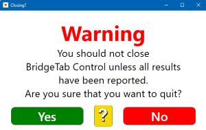 No data is lost when you close the BridgeTab control and the tabletop units will continue to run in offline mode, but you should not quit the software unless you are finished.