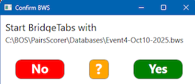 Yes will start BTC with the indicated database. You should click No and start the desired BOS event if you realize that you have made a mistake.