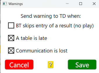 A supplementary TD licence gives you the possibility to be alerted when a table is late, skips to enter a result or the communication with the table is lost.