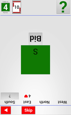 The player in turn to bid is indicated by the ? mark in the bidding summary and the “Bid” button.