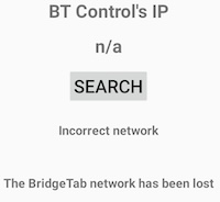 HARD-CODED IP You can force the BT to connect to the control software’s IP (shown in the header of the control software’s main interface) if Search does not detect the IP. The IP is entered in the field “Enter IP manually here”.