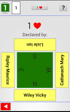 The N/E/S/W directions are indicated on (the green) table.