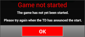 Start button The Start button will show when the WiFi icon is blue, but that is no guarantee that start is possible. It can happen that the warning of the type shown to the right will be displayed when you click the Start button. It can also happen that the WiFi icon changes from blue to another colour indicating that the communication does not work as it should. See the Network page for explanations and advice.