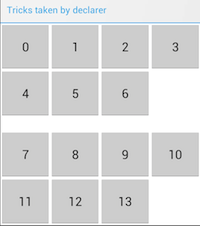 The TD menu uses a simplified interface for entries of results that should be self explanatory. You will follow the usual sequence (contract, declarer, etc.). Contract is divided on two parameters (trick level and suit, respectively) for convenience. Tricks are always entered as TOTAL number of tricks taken by the declaring side. |