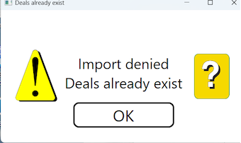 IMPORTING DEALS INTO BTC Deals can be imported into BTC via FILE/Import deals, which opens a Windows file dialog with .dlm as the default file format. i.e. you might have to change the file format. BTC will warn if you change to “All filetypes” and select a file that cannot be recognised, see illustration to the right.