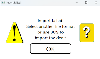 Note that there is a file conversion tool in BOS that can prove useful if you have a deals file that BTC does not recognise.