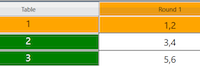 SOME REDMARKED TABLES The reason why some (but not all) of the tables are redmarked in the grid can be that the red tables have a [too] weak WiFi signal. We suggest that you bring these tablets closer to the WiFi base (the router) and start the BTs from there. They will then run offline until the game is finished. The grid will look as shown in the lower illustration to the right during the session, but there are no worries so long as there is no change of movement. When the game has finished you ask the players to bring the offline unit(s) back to the WiFi base to have the results uploaded to BTC.