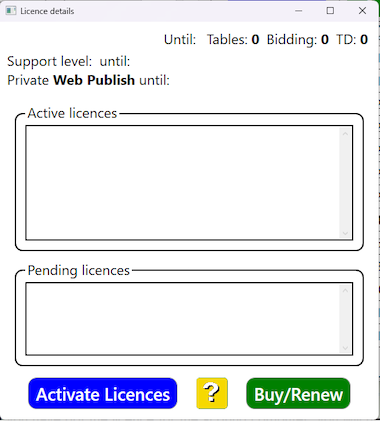 The message shown below appears when there is no active licence. The normal choice is to get a test licence, but you can purchase a licence right away or test without any licence. If you have just bought a licence, you should activate it.