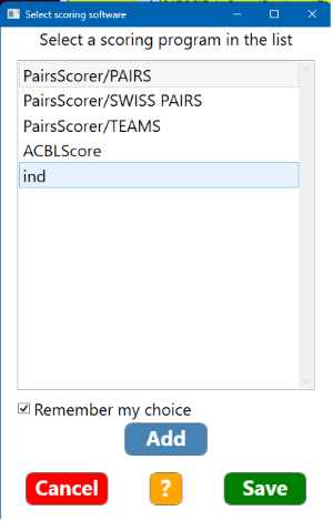 You can select the scoring program that you want to use in the dialog shown to the right.