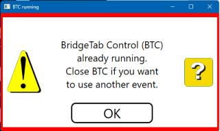 You can start BridgeTab Control (BTC) in three alternative ways: 1. Start via the Bridge Organizing Software (BOS).