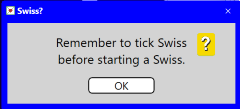 Before the last stanza you should remember to untick Swiss. See the Manual for more detailed explanation of Swiss games. TIMER